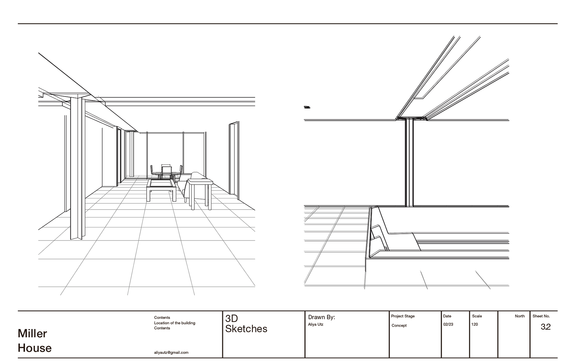 This project features a comprehensive set of architectural drawings for the Miller House, one of my favorite mid-century modern homes designed by Eero Saarinen. To complement my technical drawings, I captured a series of architectural and interior photographs of the Miller House during a site visit. These images serve to bridge the gap between conceptual renderings and real-world application.